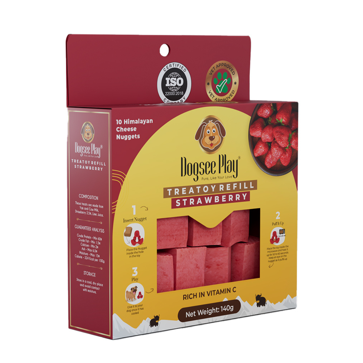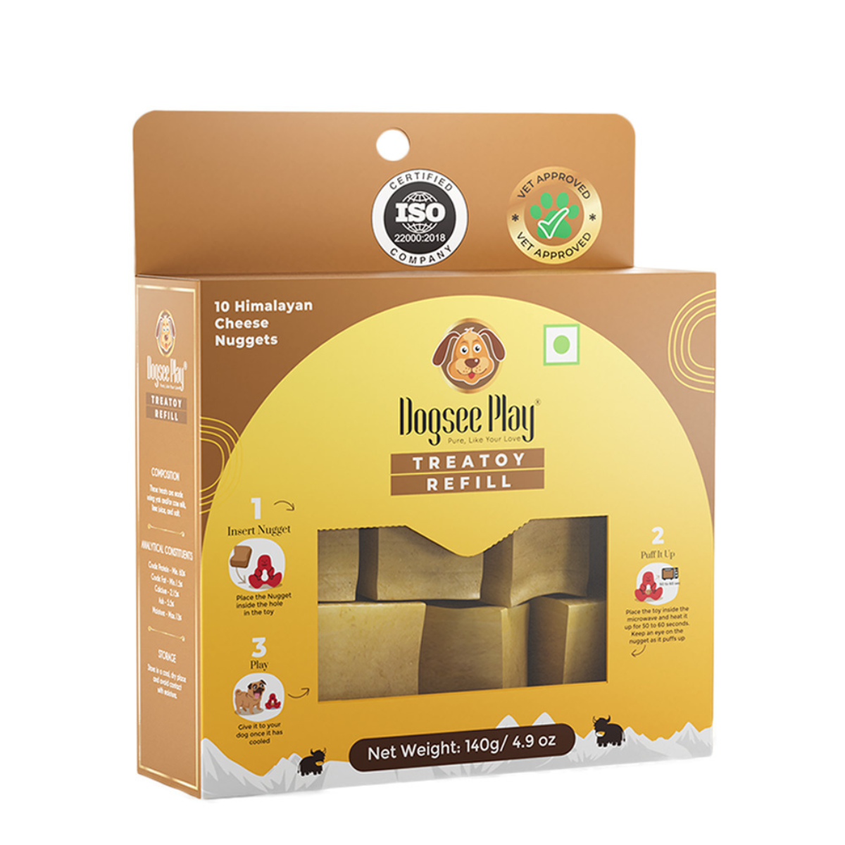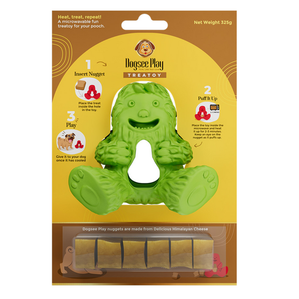 Make treat time more fun, healthy, and interactive with the Dogsee Play Treatoy Yeti – a safe, chew-friendly toy that dispenses puffed Himalayan cheese nuggets to keep dogs happily chewing for longer. The unique design allows you to microwave a nugget inside the Yeti’s belly, creating a puffed cheesy treat that dogs go wild for!