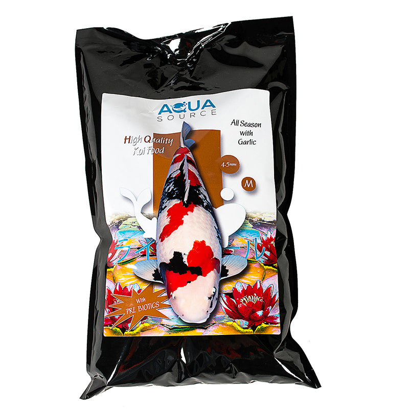 Feeding Aqua Source All Season with added Garlic will help keep your koi healthy throughout the year and can be fed above 8c. Especially beneficial after medical treatments or (re)starting filters.