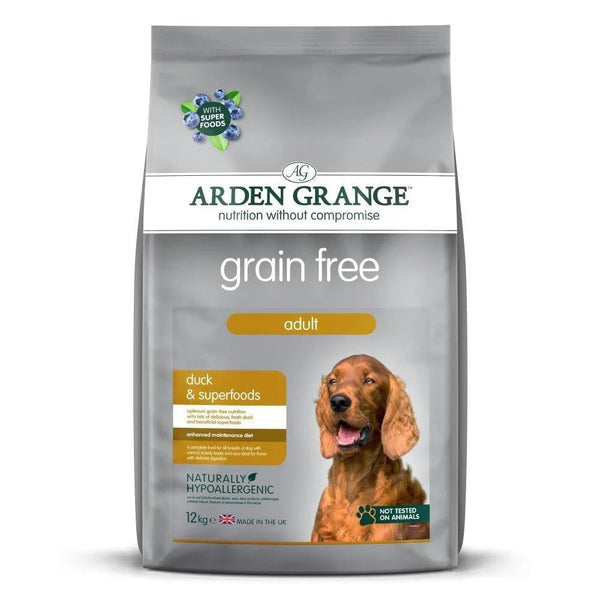 Arden Grange Adult Grain Free Duck & Superfoods. Arden Grange Grain free adult duck & superfoods is a complete, super premium pet food for normally active adult dogs. It contains 43% duck which is a highly nutritious, novel protein source, especially rich in vitamins and minerals. This recipe excludes grains and cereals and contains a novel carbohydrate source for dogs who cannot tolerate white potato or rice. This diet also includes our blend of nutrient-rich superfood ingredients. Our special superfood blends of fruit and plant extracts include nutrient-rich ingredients that have been selected for their excellent antioxidant properties, and will provide much needed support to dogs’ immune systems and overall health and wellbeing. The benefits of adding superfoods to our diets are increasingly gaining recognition. Rich in certain compounds, these foods hold powerful potential to boost our health and that of our pets.