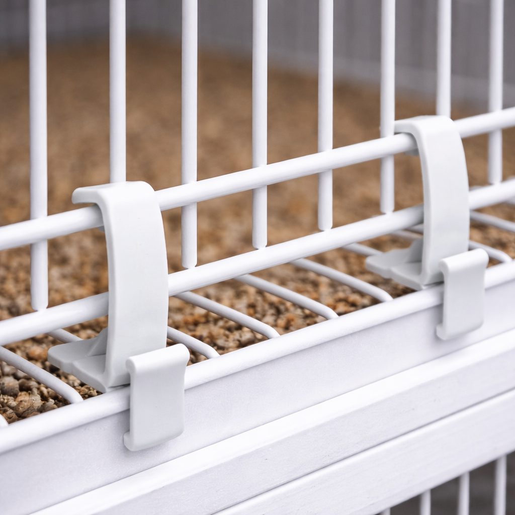 Made from durable white plastic, the clips fit snugly around the cage bars with no gaps, ensuring a stable and secure hold. They are easy to fit and remove for cleaning while providing reliable everyday use.