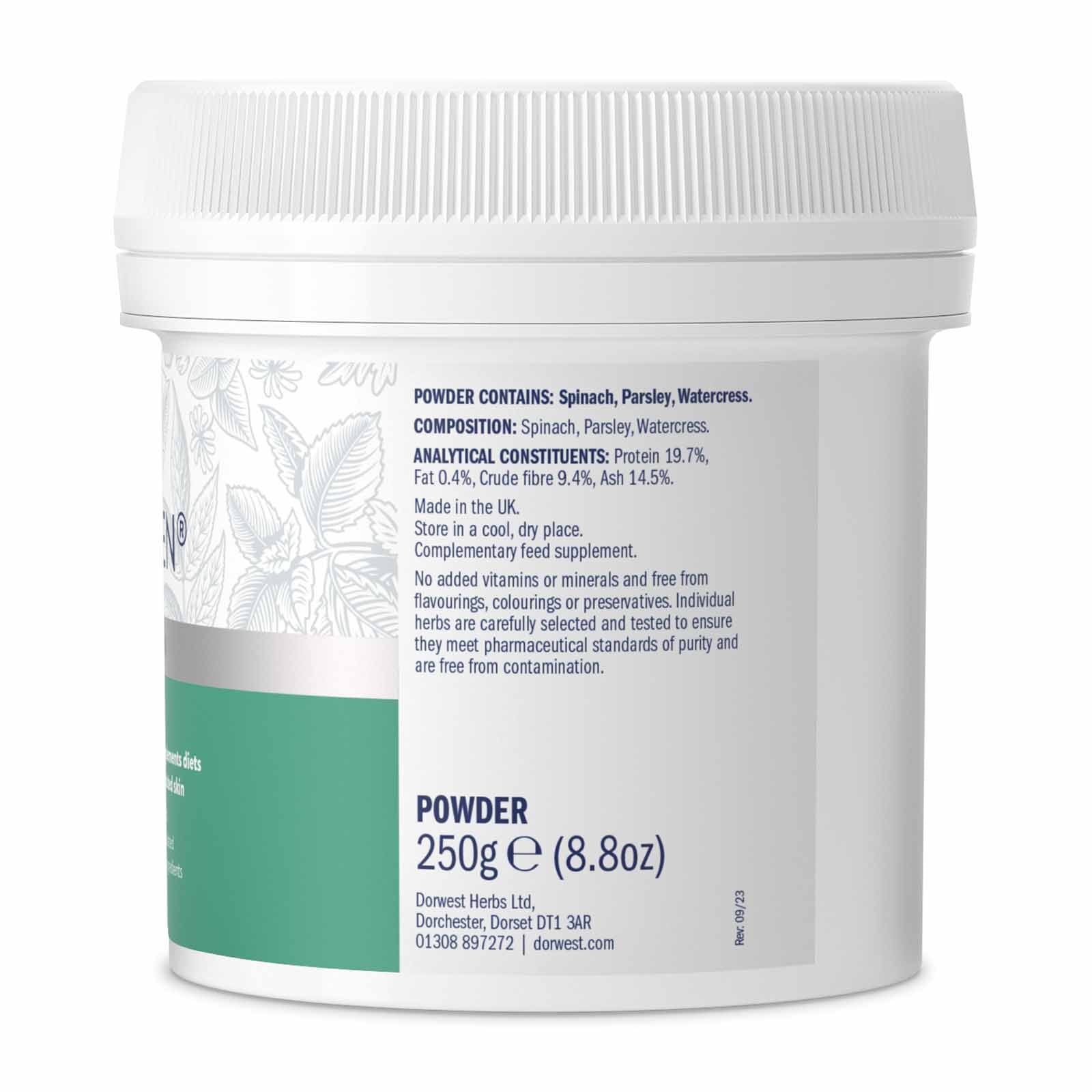 Give your pet the power of super-greens in a convenient, easy-to-feed supplement. Dorwest Easy Green® Powder is packed with essential nutrients to promote all-round health and wellbeing for your dog or cat. Made from a finely milled blend of air-dried, nutrient-rich greens, this natural supplement is an ideal way to provide iron, vitamin C, chlorophyll, calcium, magnesium and powerful antioxidants without having to serve raw vegetables.