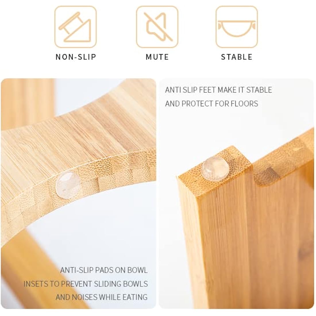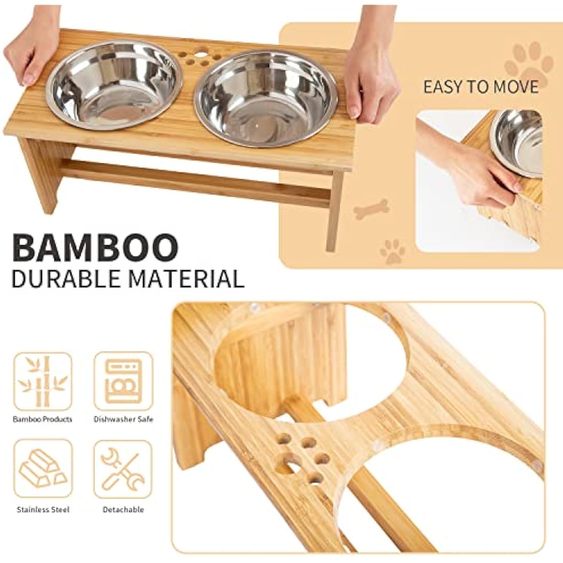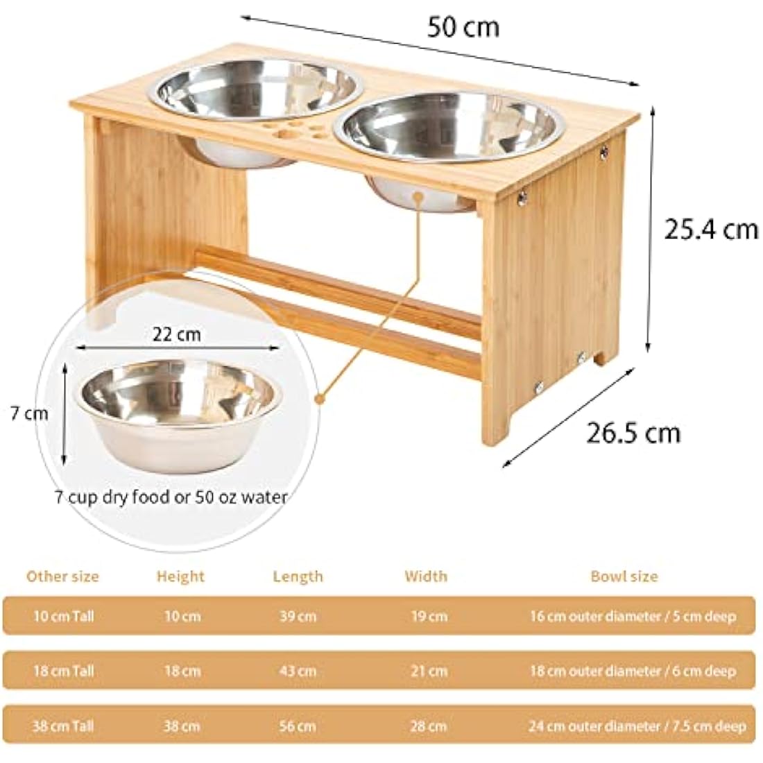 FOREYY Raised Dog Bowls for Cats and Dogs - Bamboo Elevated Dog Cat Food and Water Bowls Stands Feeder Dishes with 2 Stainless Steel Bowls and Anti Slip Feet (Large - 25.4 cm high)