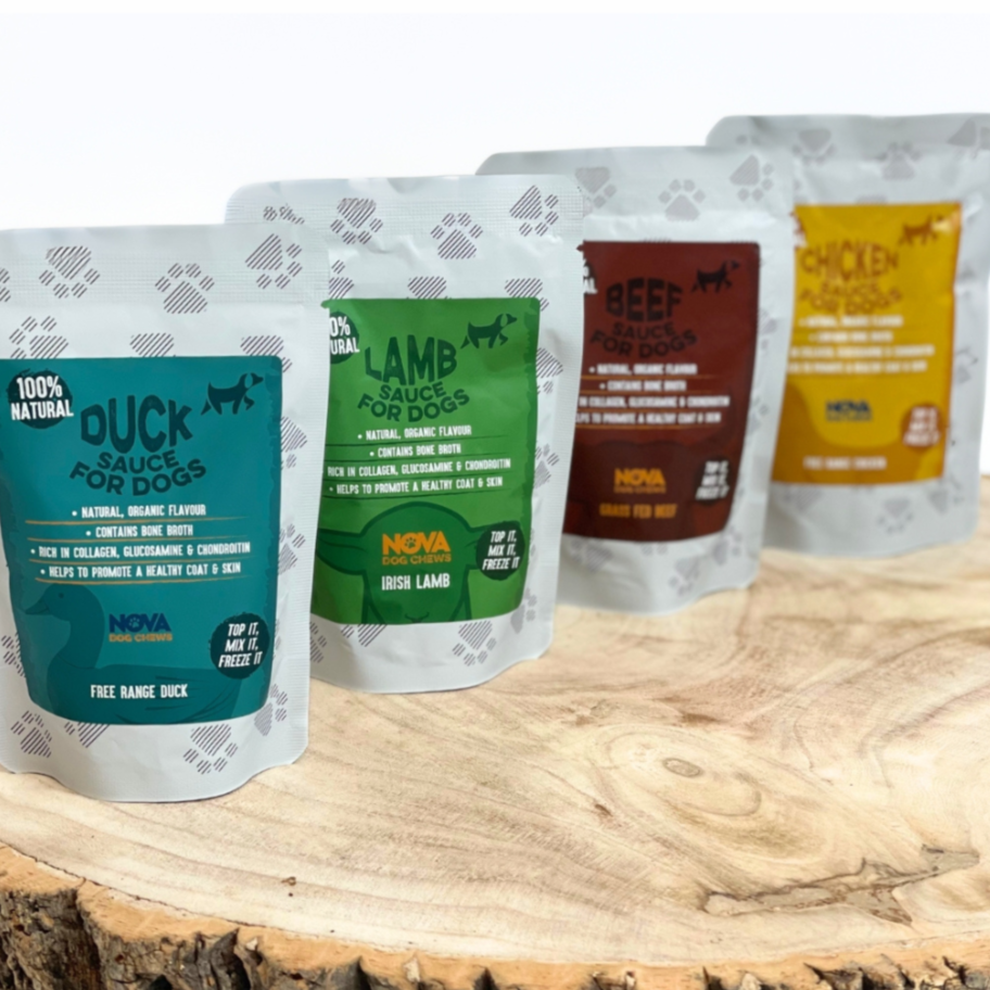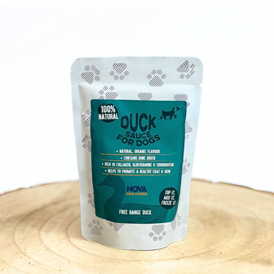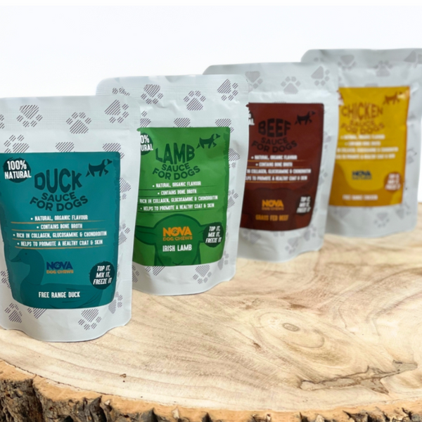 Give your dog a delicious and nutritious boost with Nova Bone Broth Sauces – a natural way to support joint, skin, and coat health. Available in four irresistible flavours – Lamb, Duck, Beef, and Chicken – these 100% natural sauces are rich in collagen, chondroitin, and glucosamine to:
