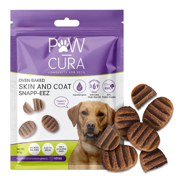 Paw-Cura Skin & Coat Snapp-Eez Dog Treats | Hypoallergenic Insect Protein 120g