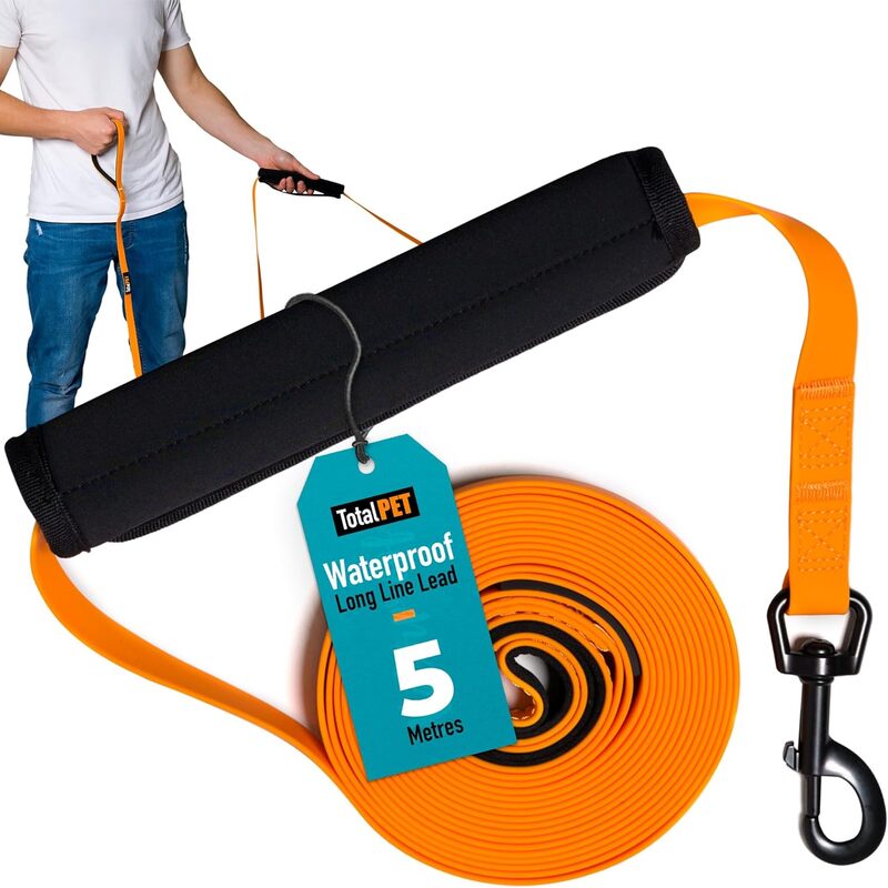 Total Pet Waterproof Training Dog Lead. The Total Pet Waterproof Training Long Line is the ultimate tool for training your dog’s recall and obedience from a distance. Whether you're at the beach, in the woods, or working on recall in open fields, this versatile lead gives your dog room to roam while keeping you in control.