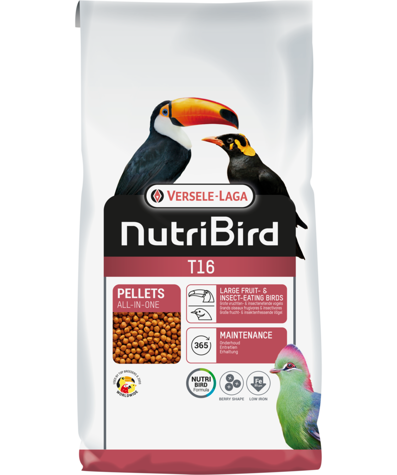 - Iron Storage Disease is a frequently occurring problem with frugivorous and insectivorous birds; that is why NutriBird T16 has such a very low iron content (max 85 ppm).